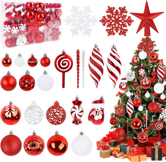 Christmas tree balls 128-piece set, Christmas balls Christmas decorations set, Christmas tree topper & Christmas tree decorations for indoors and outdoors, Christmas tree decorations (red)