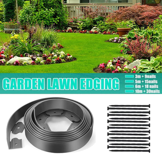 Border Edging, Garden Edging Border Plastic,10M Flexible Law Edging with Strong 30 Garden Pegs for Garden Border Edging Ideas, 5cm Height, Black