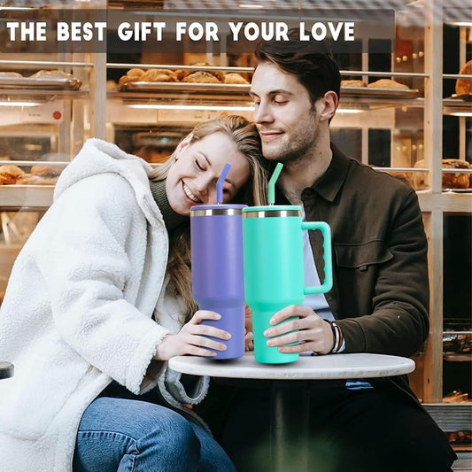 40oz Stainless Steel Vacuum Insulated Cup Double Wall Travel Flask Car Coffee Mug Tumbler with Straw with Handle for Hot Iced Coffee