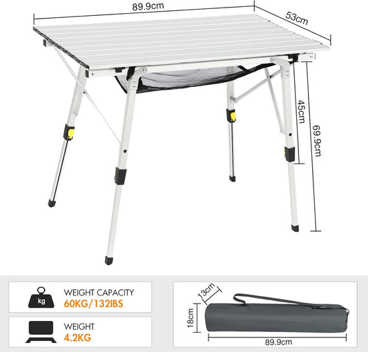Camping Tables That Fold up Picnic Table Folding Portable with Height Adjustable Legs Collapsible Table 3ft Aluminium Rollup Outdoor Table Lightweight Foldable for Beach Fishing Garden BBQ
