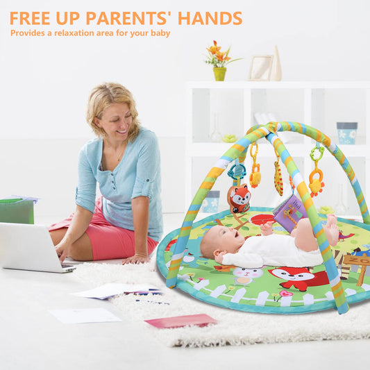Baby Play Gym, Activity Gym Stage-Based Sensory and Motor Skill Development Language Discovery Baby Play Gym and Playmats for Newborn with 5 Featured Toys with Storage Bag