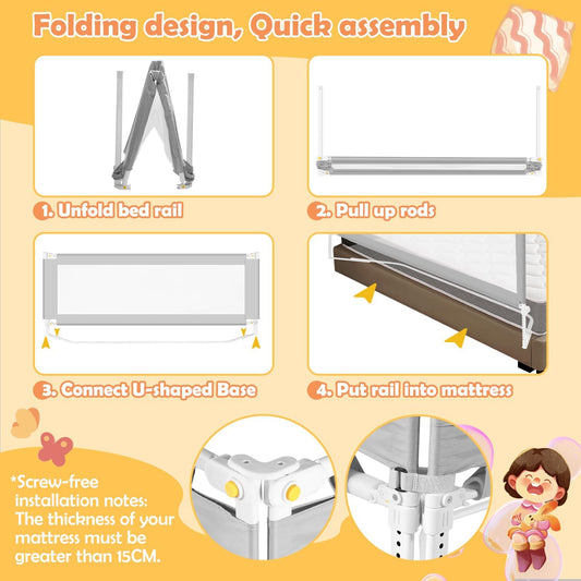 Bed rail fall protection foldable, bed guard rail foldable children's bed rail travel, nail-free assembly fall protection bed for toddlers baby bed rail, gray