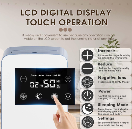 10L/D Dehumidifier with HEPA Filter, Low Energy Compressor with 2.5L Tank& Continuous Drainage, Digital Display/Timing/Sleep Mode/Purification/Humidity Setting, for Laundry Drying Basement