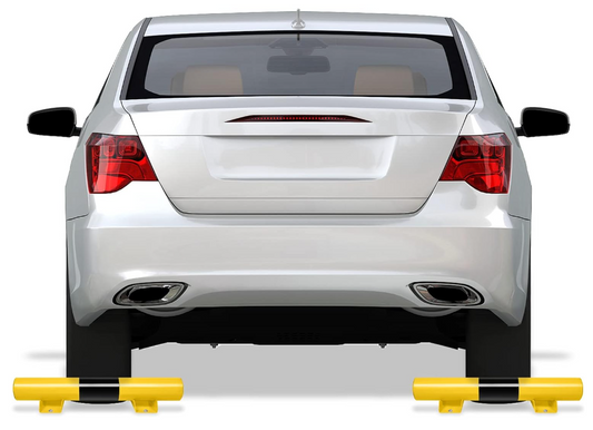 Set of 2 metal wheel stoppers, parking stoppers, garage stoppers with reflective strips, parking space barrier 60x13x9cm, parking barrier black + yellow, tire protector, garage stopper
