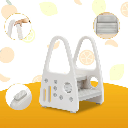 Step stool Two-step step stool for children from approx. 1 to approx. 8 years Children's stool With comfortable handrail Anti-slip stepladder learning tower for kitchen Non-slip