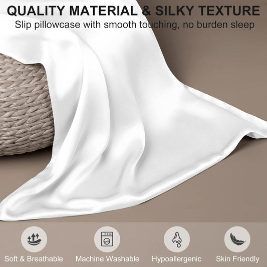 Satin Pillowcases, Pillow Cases 2 Pack for Hair and Skin, Silk Touch Pillowcase Soft, PillowCases with Envelope Closure, Standard Size 50x75cm (White)